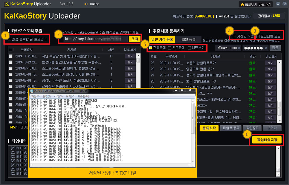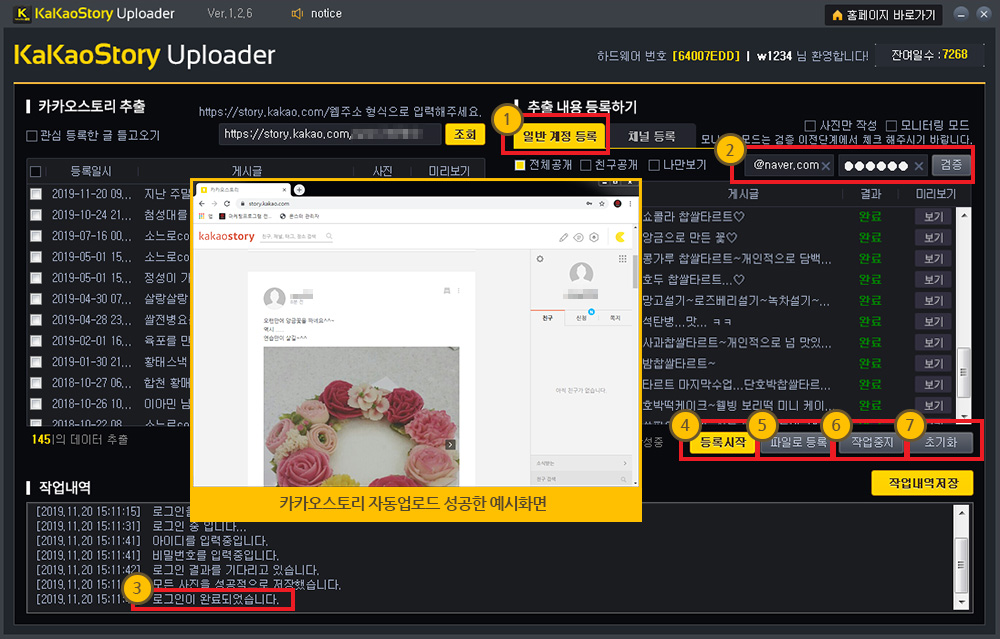 1 일반 카카오스토리 계정에 게시글 등록작업이 가능합니다.