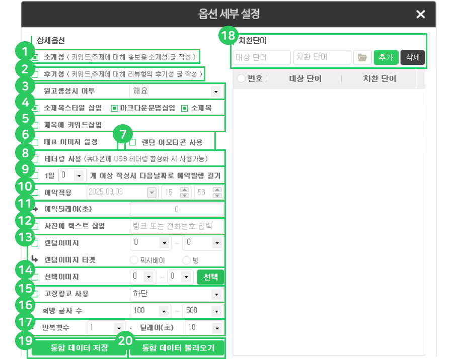 고정 광고 문구, 사진 삽입 등 원하는 내용을 미리 설정해 두면 모든 포스팅에 자동으로 들어가서 편리합니다. 한번 더 수정 할 필요가 없어서 너무 좋아요 |