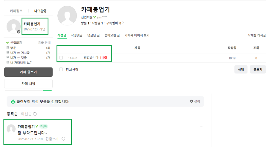 자동으로 카페에 가입하고 등업까지 되니 관리가 훨씬 편해요.